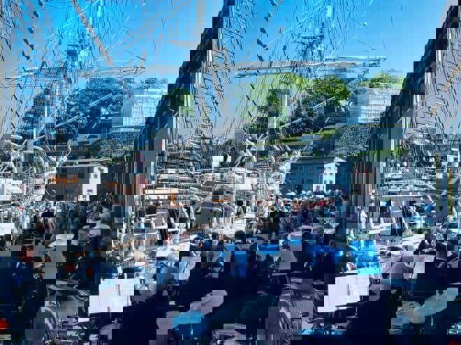 Christian Radich ble feiret og hedret 9. juni 2023. Norges første Blå skilt på et bevegelig kulturminne ble avduket. Med Oslo Byes Vel, mange gjester og Kampen Veteranorkester som underholder; kunne det vært bedre?